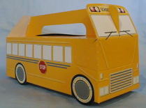 アメリカのスク−ルバスをデザインしたランチボックスです。あまりにもかわいいので、使い捨てではなく使用後もディスプレイになる様にしました。(意匠登録出願中・特許出願中)
